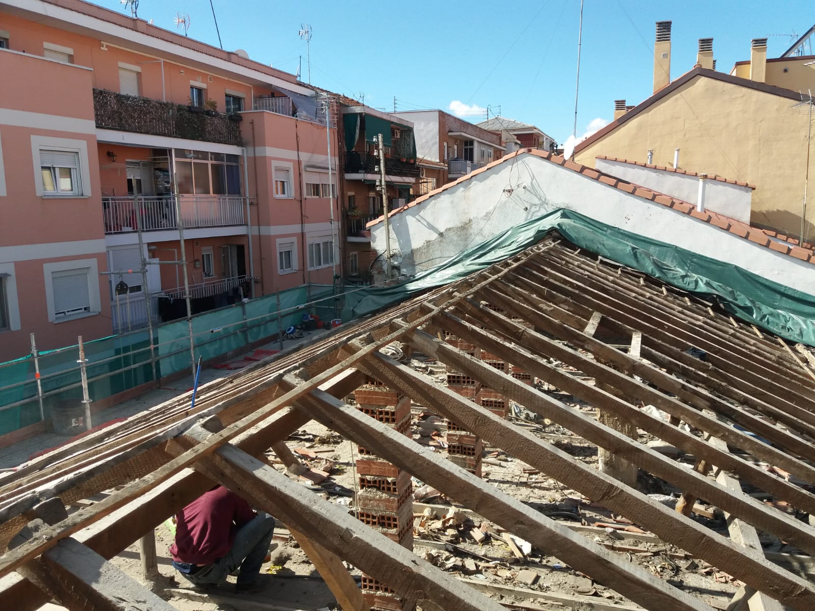 Se procede a la demolición de los petos, y al desmantelamiento de la actual cobertura de teja cerámica y rastreles.